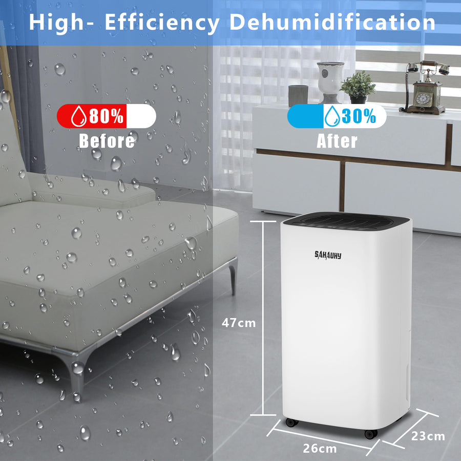 SAHAUHY household dehumidifier adopts high-quality compressor, evaporator, and high-efficiency fan for rapid dehumidification. Effectively and quietly remove moisture from any space, up to 2000 square feet. Create a more comfortable environment for you. A smaller space means a more noticeable effect.