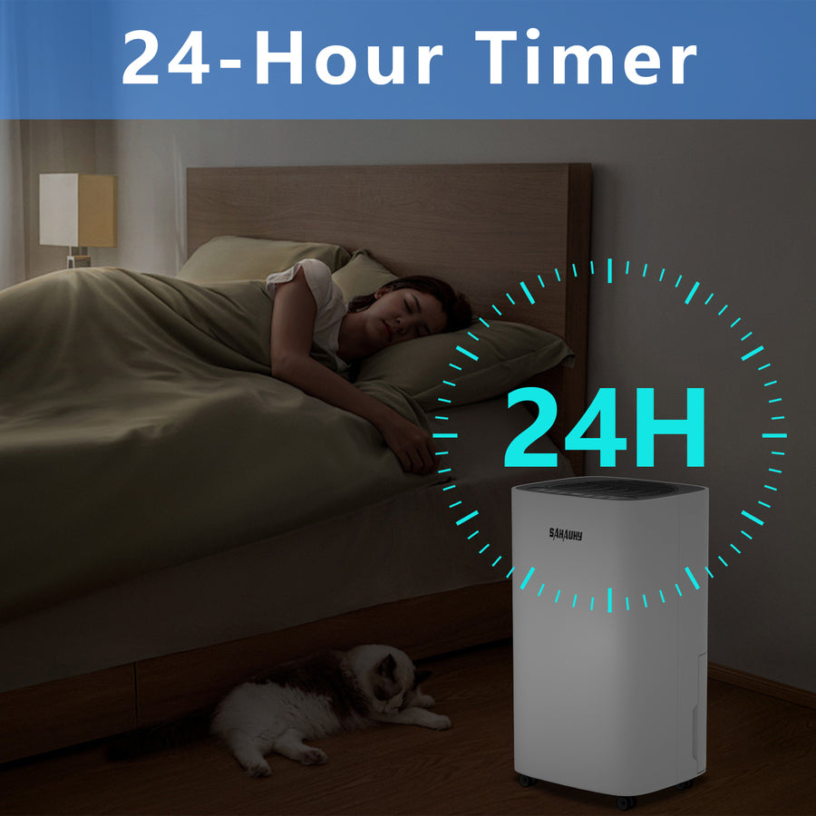 This bedroom dehumidifier has three modes: automatic mode, continuous drying mode, and sleep mode, and you can choose different modes according to your environment. Simply set the timer button and humidity setting button to achieve the desired dehumidification effect. This portable dehumidifier is suitable for any home, bedroom, basement, office, bathroom, kitchen, storage room, garage, and living room.