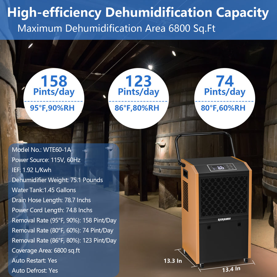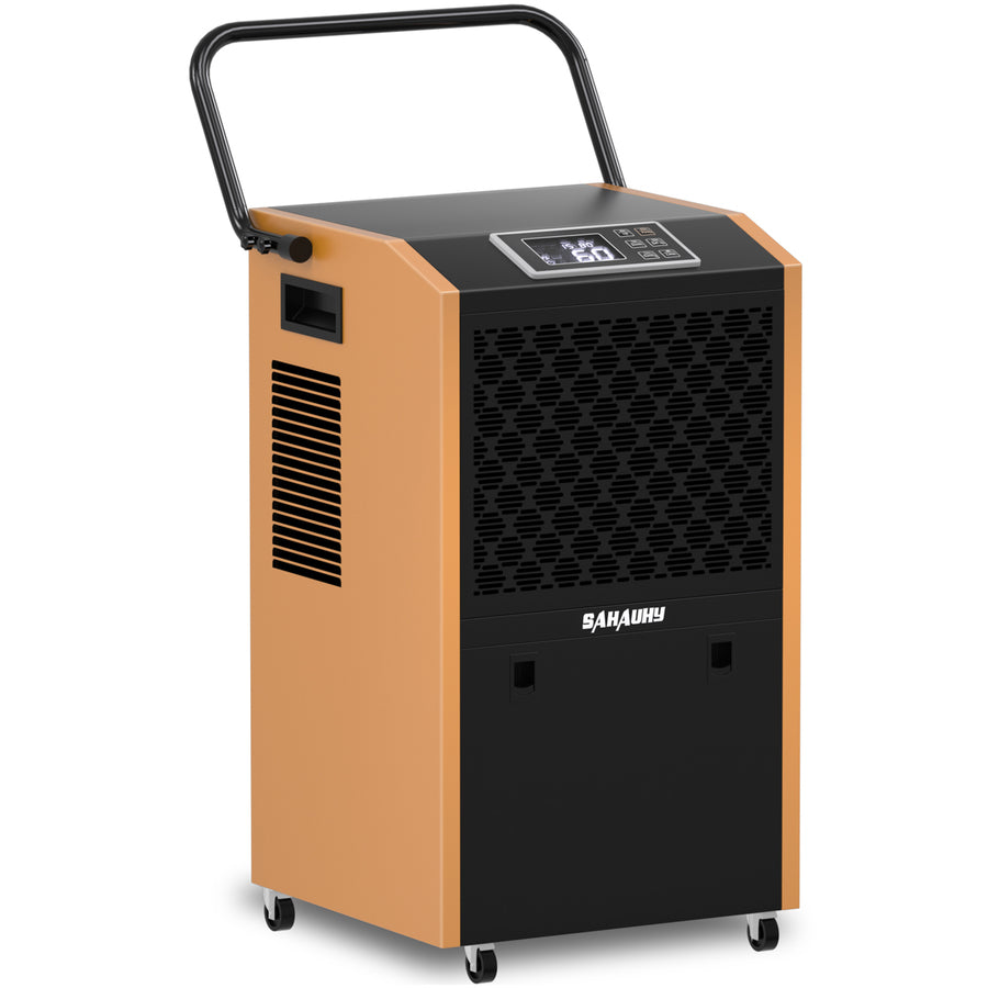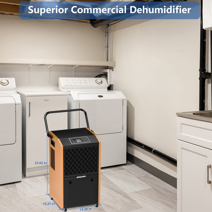 SAHAUHY 158 Pints Commercial Dehumidifier for Basement,Warehouses and Large Spaces up to 6,800 Sq Ft with Drain Hose and Water Tank,5 Years Warranty(Yellow)