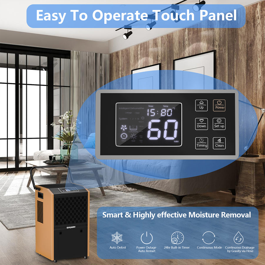 【Intelligent Control 】High-performance Professional Dehumidifier with Drain Hose- Featuring with automatic humidistat system,timer, automatic restart after power outages,auto defrost, continuous drainage,auto stop and alarming functions if the tank is full,it works well for urgent water damage restoration, fast structural drying, and other jobs that require fast dry.
