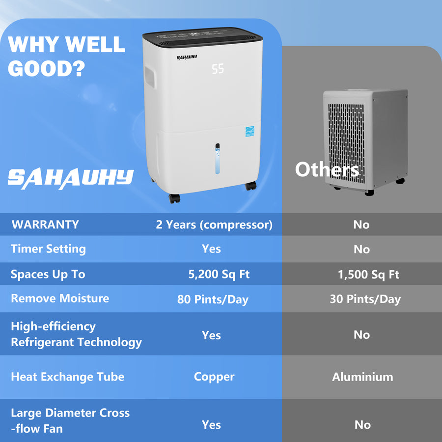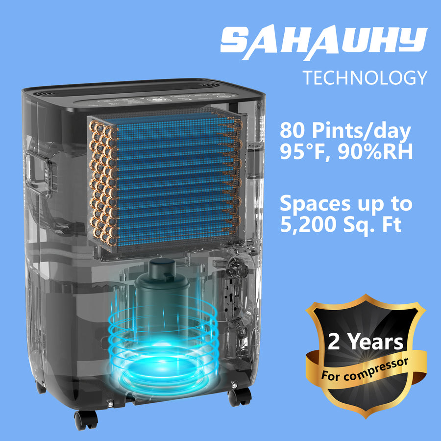 SAHAUHY 80 Pints Dehumidifier for Home Bedroom Garage Basement Stockroom and Large Room Spaces up to 5,200 Sq. Ft with Drain Hose and Water Tank